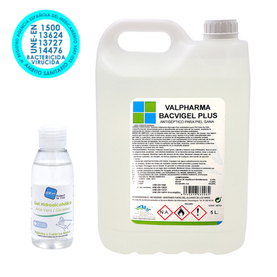 Valpharma BACVIGEL PLUS - Garrafa Gel Antiséptico para manos 5L OFERTA: Mascarilla antivírica y una gel hidroalcohólico de 100ml GRATIS