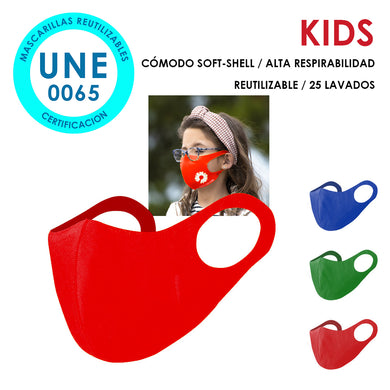 Mascarilla Higiénica Reutilizable y Elástica Niños - Color Rojo (PERSONALIZABLE)
